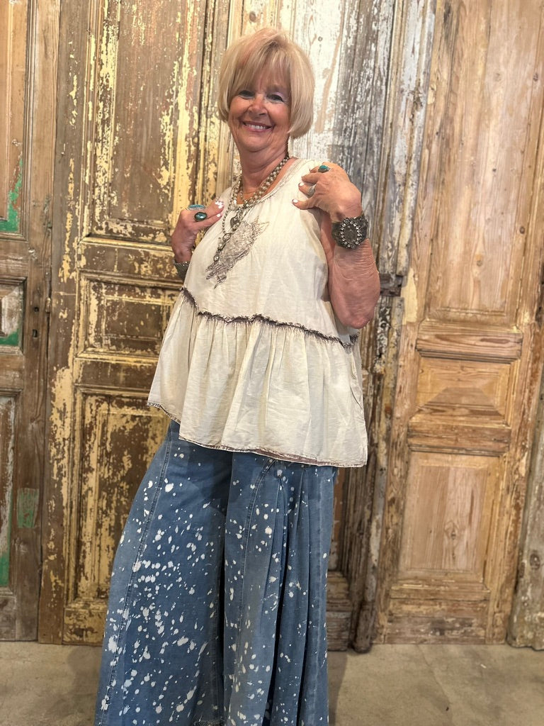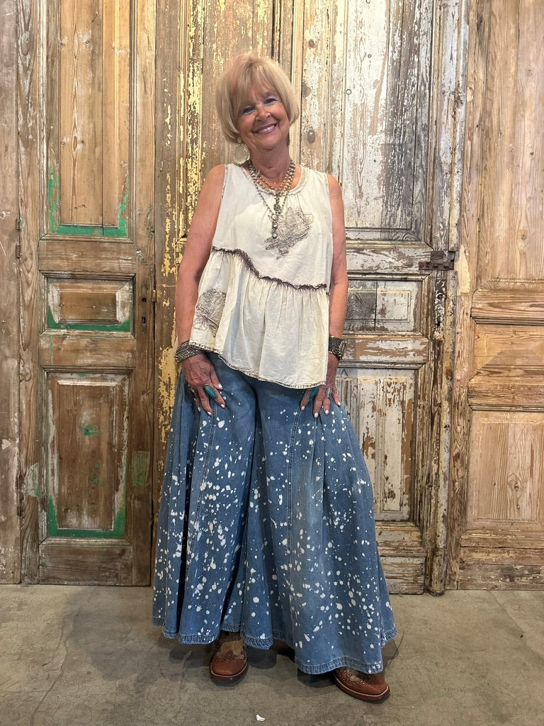 The Tone on Tone Embroidery Tank is your go-to boho summer top—light, breezy, and full of charm. Made from 100% soft cotton and washed for that perfectly vintage look, this tank features a dreamy asymmetrical hemline and delicate crochet flower embroidery on both the front and back for subtle texture and style. 🌿✨