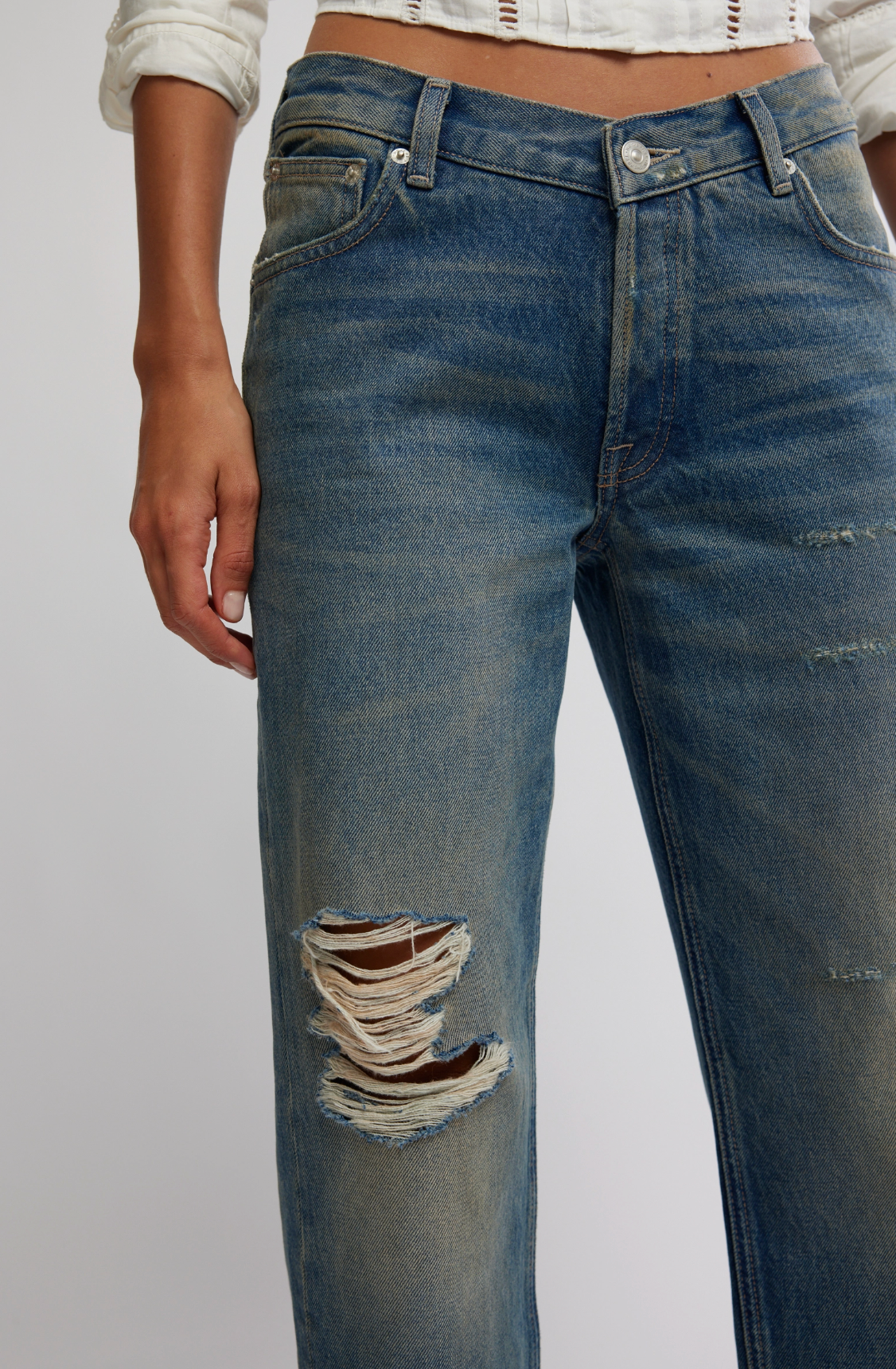 Made from 100% cotton, these mid-rise slim jeans feature light distressing in the front and a raw hemline for a perfectly undone, lived-in feel. Easy to wear, they bring that relaxed boho polish that works with everything — from lacey tops and chunky knits to tucked-in tees and boots.