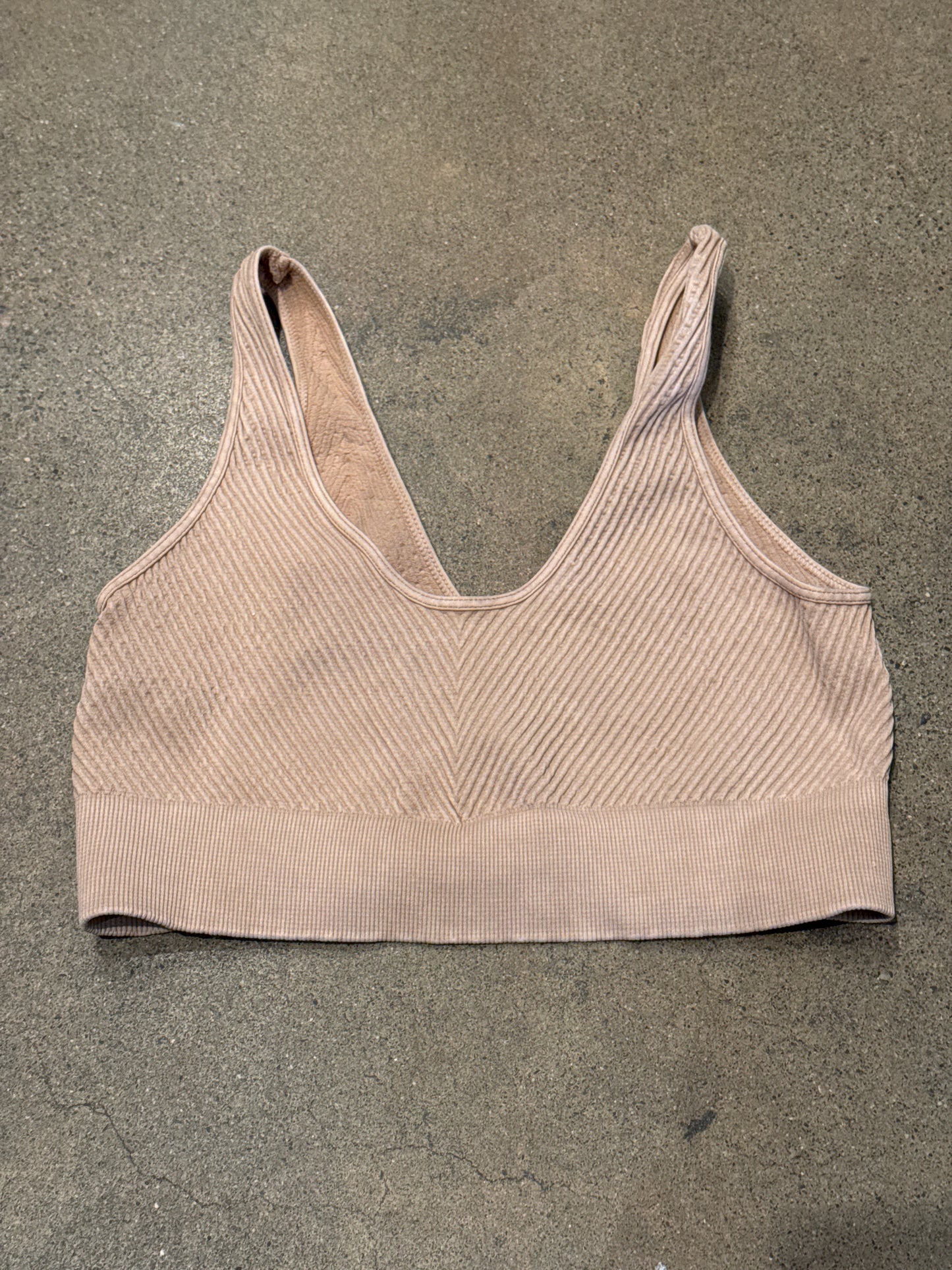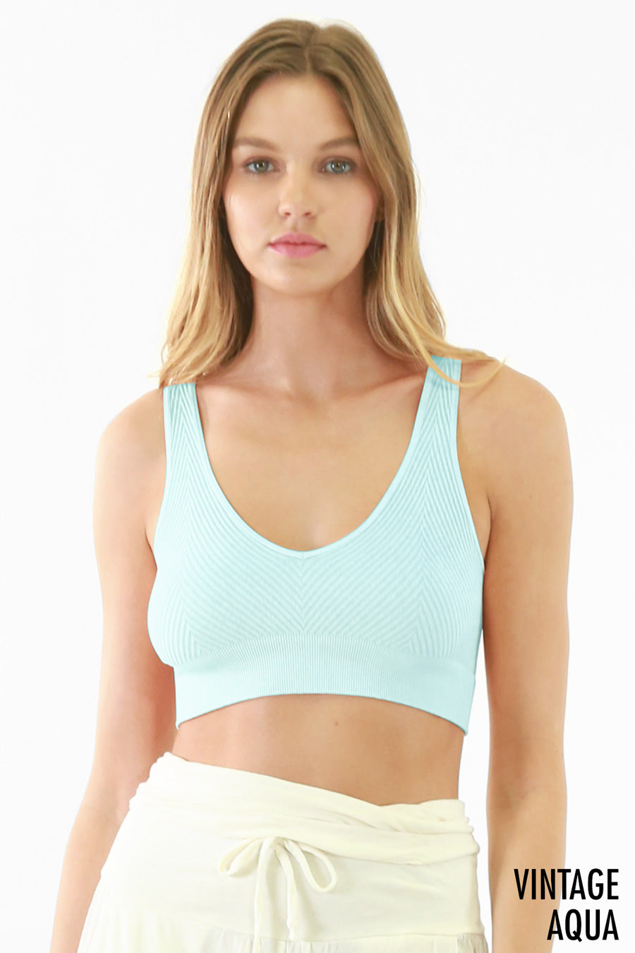 Once you try one of our seamless cami tops, you will be hooked!  Not only is it the new age bra, it triples as a layering tank or as a crop top! The ribbed knit feels like butter and the cool vintage wash makes it look so on-trend!