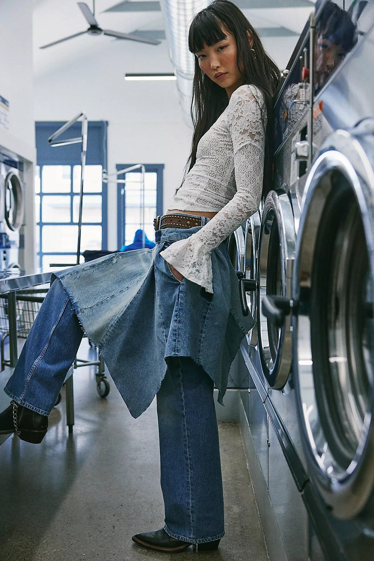 Make a statement in the Wild River Handkerchief Skirt by Free People — a bold, asymmetrical beauty with serious edge. This high-rise skirt features a two-toned denim patchwork design, crafted from authentic rigid denim for that true vintage feel. The handkerchief-style pointed hem and raw-edge detailing add movement, texture, and a perfectly undone look.